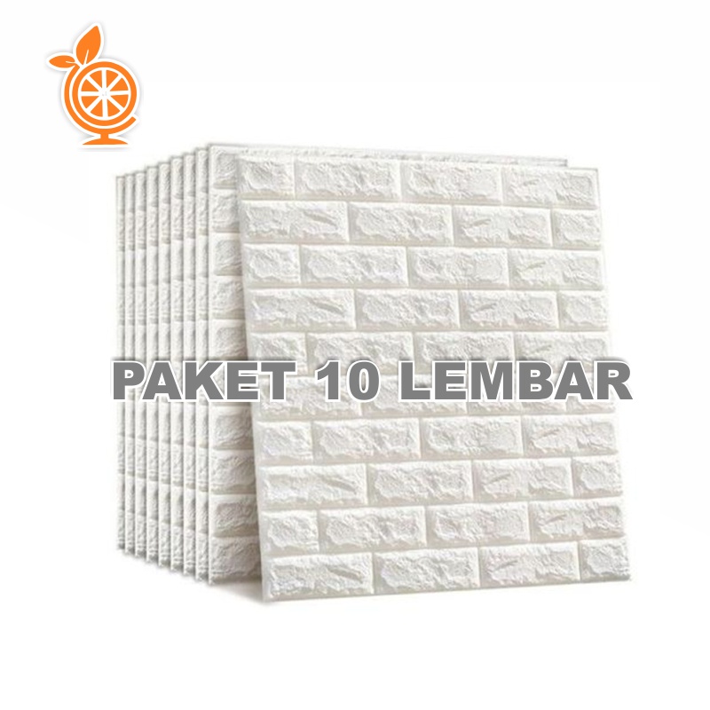 PAKET 10 LEMBAR Wallpaper 3D Foam Batu Bata Putih (Paket 10 Lembar) Ukuran Setengah Orangedekorasi
