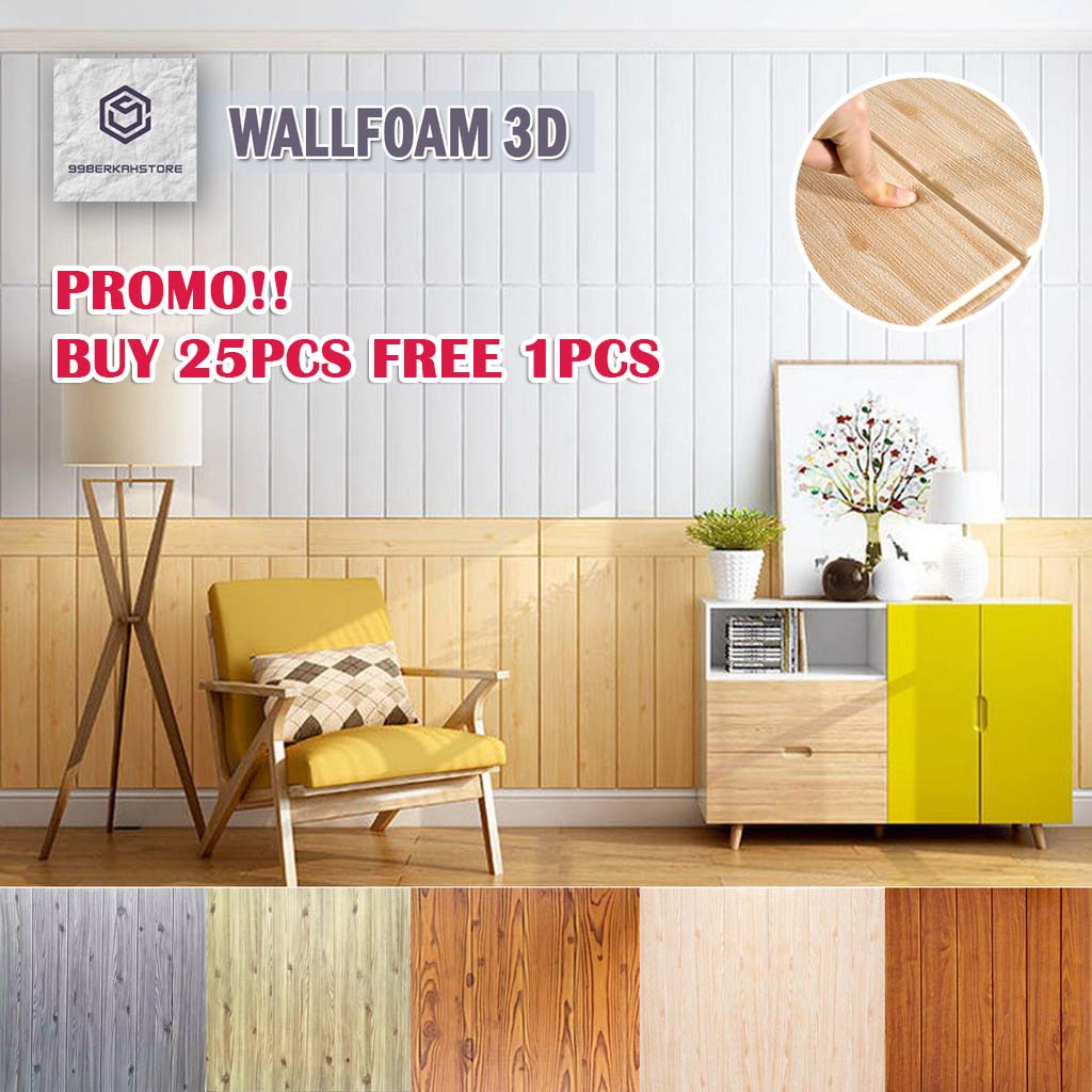 PROMO!! BUY 25PCS FREE 1PCS !! Wallpaper Foam 3D Sticker Motif Kayu Tebal 4mm & 5mm