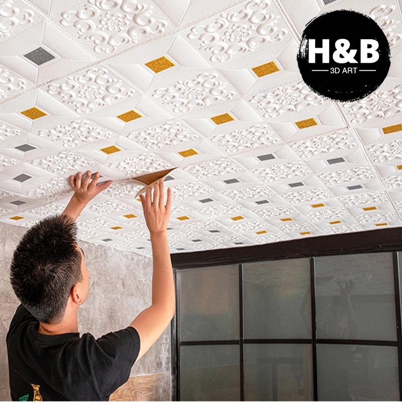 Promo!DIY Wallpaper Dinding Ceiling Wallpaper Sticker Dinding Busa Wall foam Stiker 3D Dekorasi Kamar Rumah