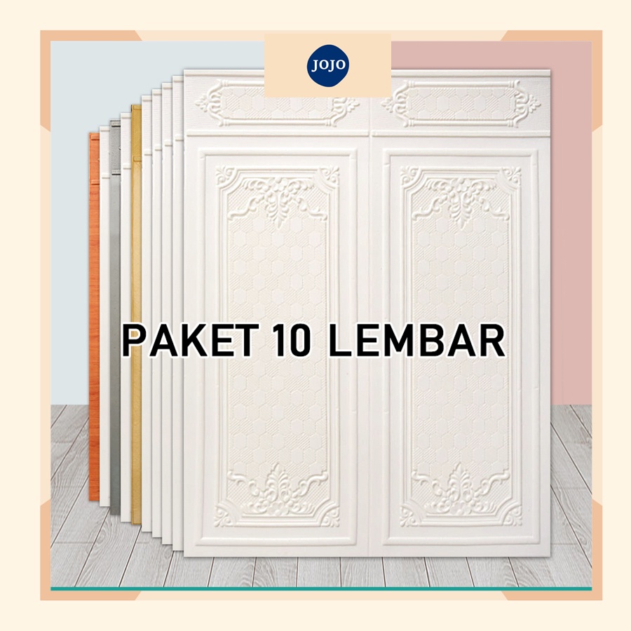 1 Paket 10 Lembar Wallpaper Foam 3D Motif 70 x 90 CM Wallfoam Dinding Motif Pintu Jati Stiker Panel Dinding