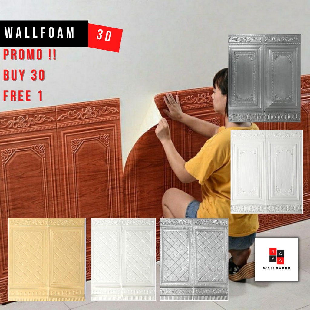 Alasan kenapa harus beli PROMO BELI 30 FREE 1 PCS !! WALLFOAM 3D PANEL 90CM X 70CM WALLPAPER FOAM sekarang