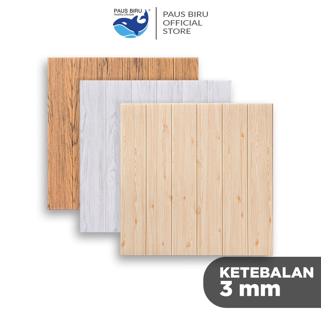 Paus Biru - Wallpaper dinding 3d motif kayu wood foam 70x70cm / wallfoam motif kayu