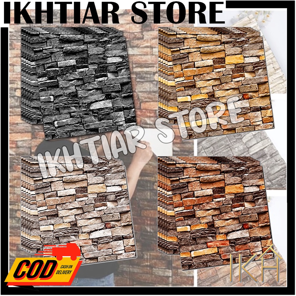 Wallpaper 3D Sticker Dinding Motif Corak Batu Alam / Wallpaper 3D Foam Brick Emboss