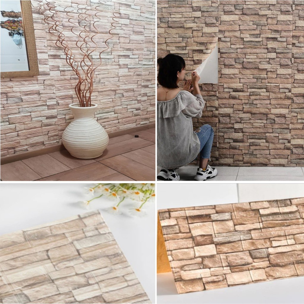 Kelebihan - Kelebihan membeli WALLPAPER 3D EMBOSSED STIKER DINDING MOTIF BATU ALAM CORAK CREAM / WALLFOAM TIMBUL 70x77cm di Toko ini