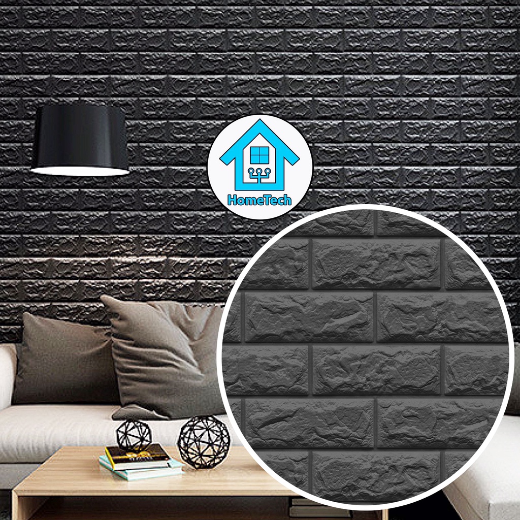 HT Wallpaper Sticker Foam Bata 3D Hitam Premium Wall Paper Stiker Dinding